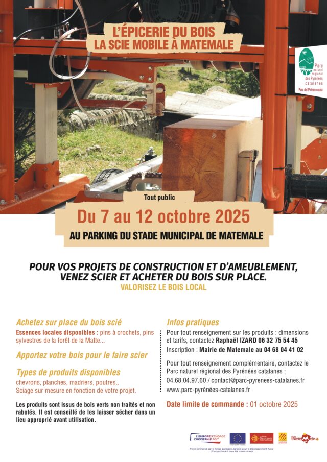 Inscription auprès de la mairie de Matemale : 04 68 04 41 02 – Date limite de commande : 01 octobre 2025