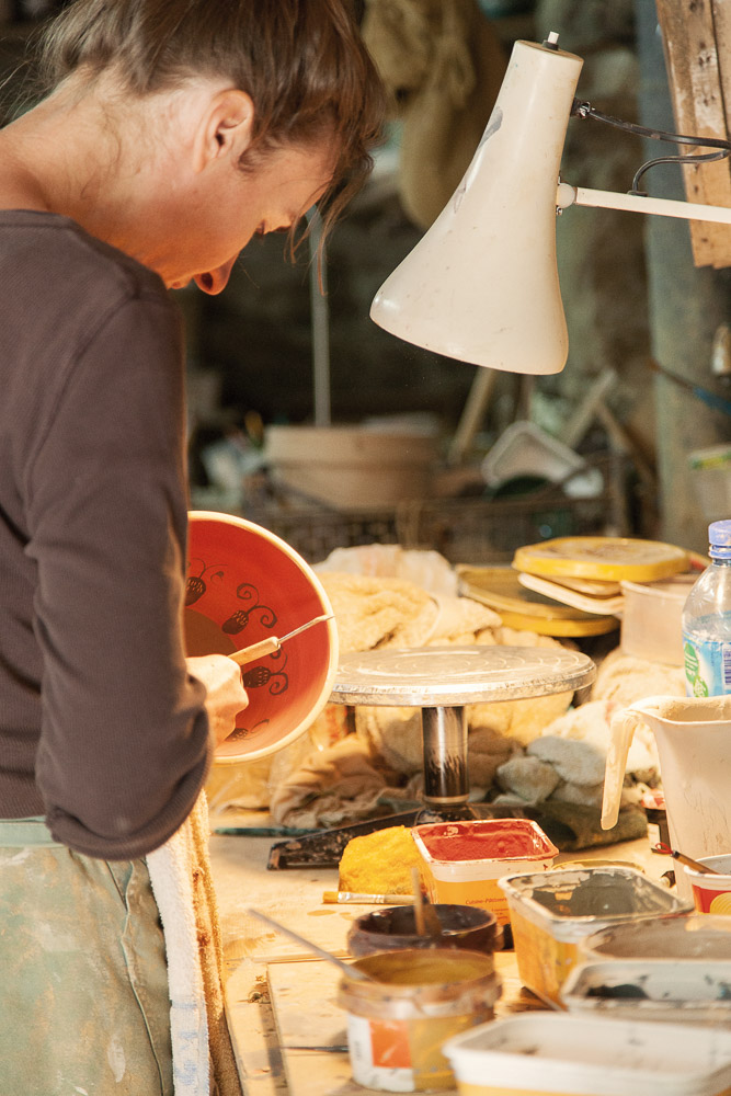 Elle décide de se lancer en tant que potière, d’abord à Rivesaltes puis à Prats-de-Mollo et elle s’installe en 2012 à Py. Dans son atelier, elle réalise toutes sortes de pièces décoratives et utilitaires : les classiques (bols, assiettes, pichets) qu’elle façonne au tour, mais aussi des pièces sur mesure et des commandes. Elle s’est imposée auprès d’une clientèle qui plébiscite ses réalisations et lui passe des commandes personnalisées.
