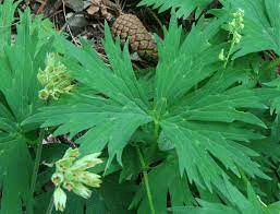 C’est une plante de grande taille, atteignant facilement 1m de hauteur. En été apparaissent ses fleurs jaunâtres, disposées en grappes à l’extrémité des tiges. Regardez-les bien et vous remarquerez qu’elles ont une forme de casque. Ses feuilles sont grandes, palmées et très découpées.